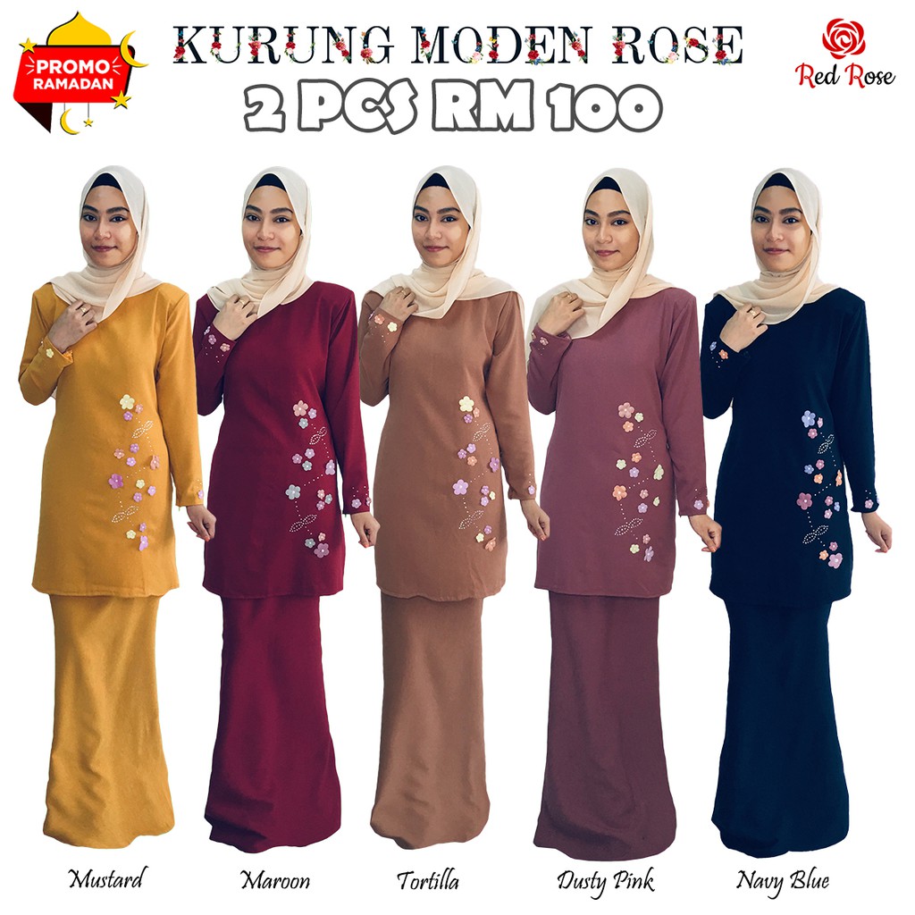 Kurung Moden Bunga 3d Pastel Manik S Xxl Red Rose Ready Stock Fast Shipping Shopee Malaysia